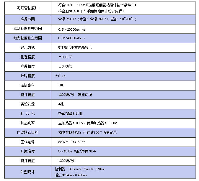 儀器符合GB/T265標準,也適用GB1841標準所規(guī)定的塑料樹脂等其他產(chǎn)品的運動粘度。儀器采用先進的單片機、彩色中文液晶顯示,溫度控制準確、精度高,自動計時、自動計算運動粘度和動力粘度、自動打印測定結(jié)果,外形結(jié)果新穎,是一款國內(nèi)較先進的運動粘度測定儀。