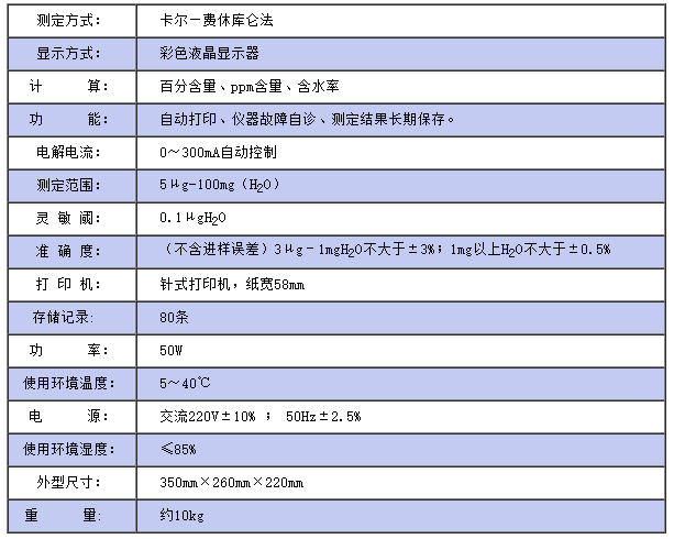儀器符合GB/T7600及采用卡爾—費休法測定樣品中水分的有關標準,適用于石油化工產(chǎn)品、充油電器設備絕緣油及礦物原料等物質(zhì)中水分的測定。 該儀器采用了大屏幕彩色液晶顯示,中文菜單,人機對話更直觀,操作更簡便,具有自動換算自動打印和保存測定結果等功能,與同類儀器相比,大大提高了測試靈敏度。